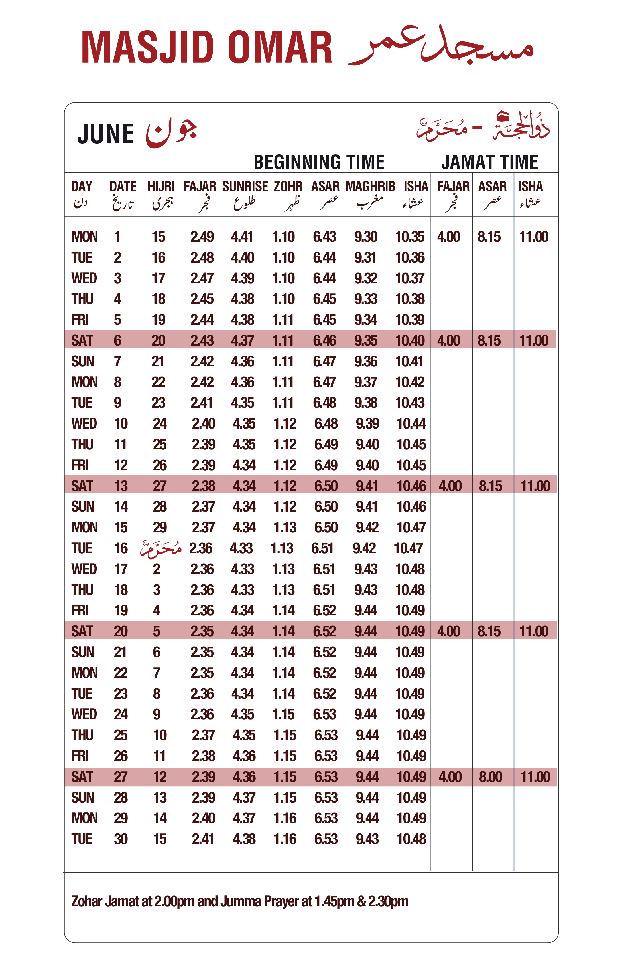 © Copyright 2020 / Masjid Omar / All Rights Reserved / Web Design by BIGHORN